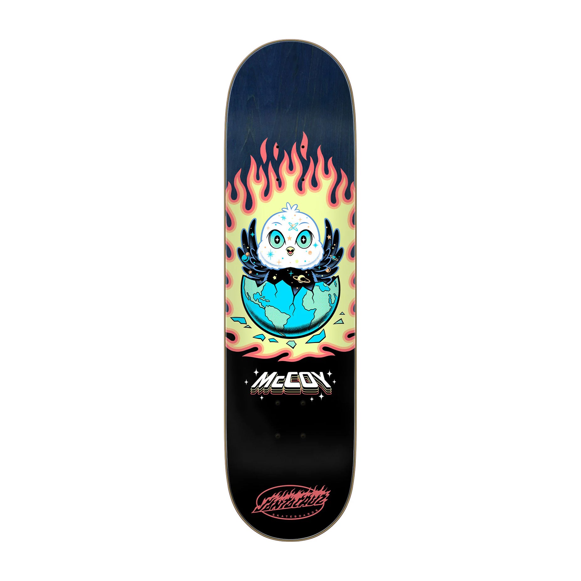 Maurio McCoy Space Chick Pro VX Deck featuring matte and neon pastel graphics on Maurio's custom twin-tail shape.
