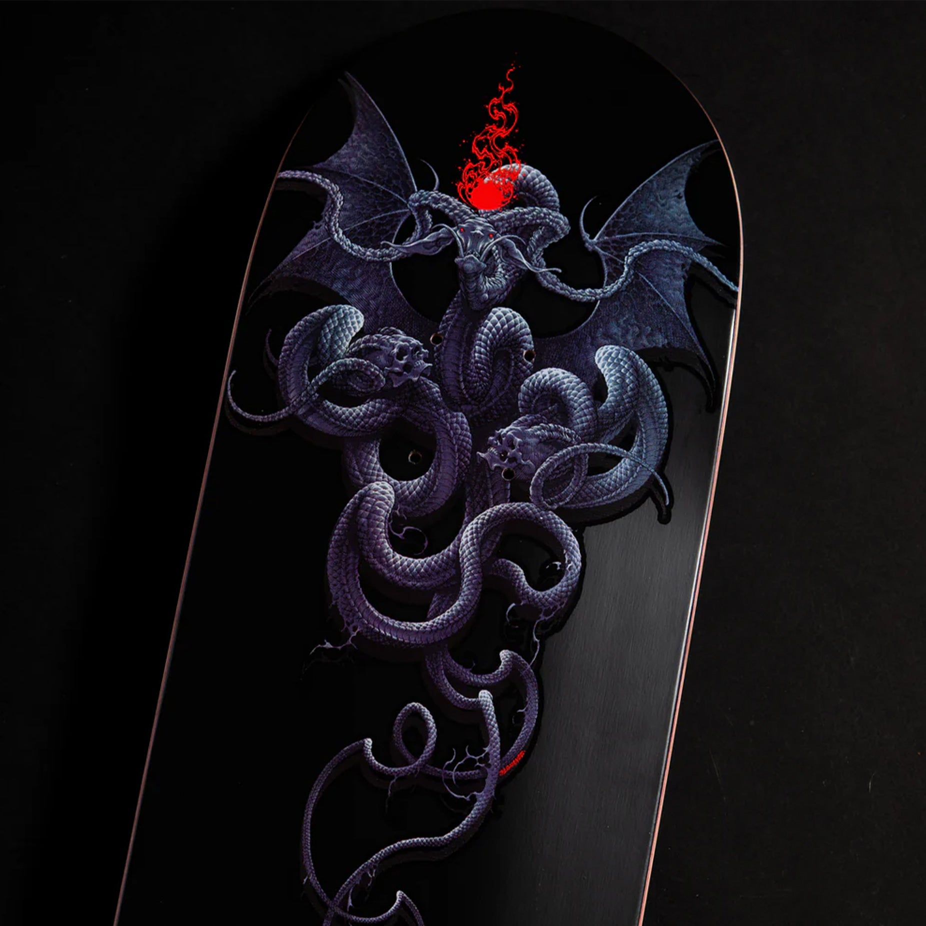 Hailing from the land of North Macedonia, artist Pig Hands inks up a healthy dose of heavy psych for three of our heaviest street punishers. Introducing the Guardian Pro series, featuring matte and gloss inks with blood red veneer knockouts all on the agile 14.25” wheelbase Stumps shapes.