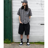 - Washed black shorts with white stitching