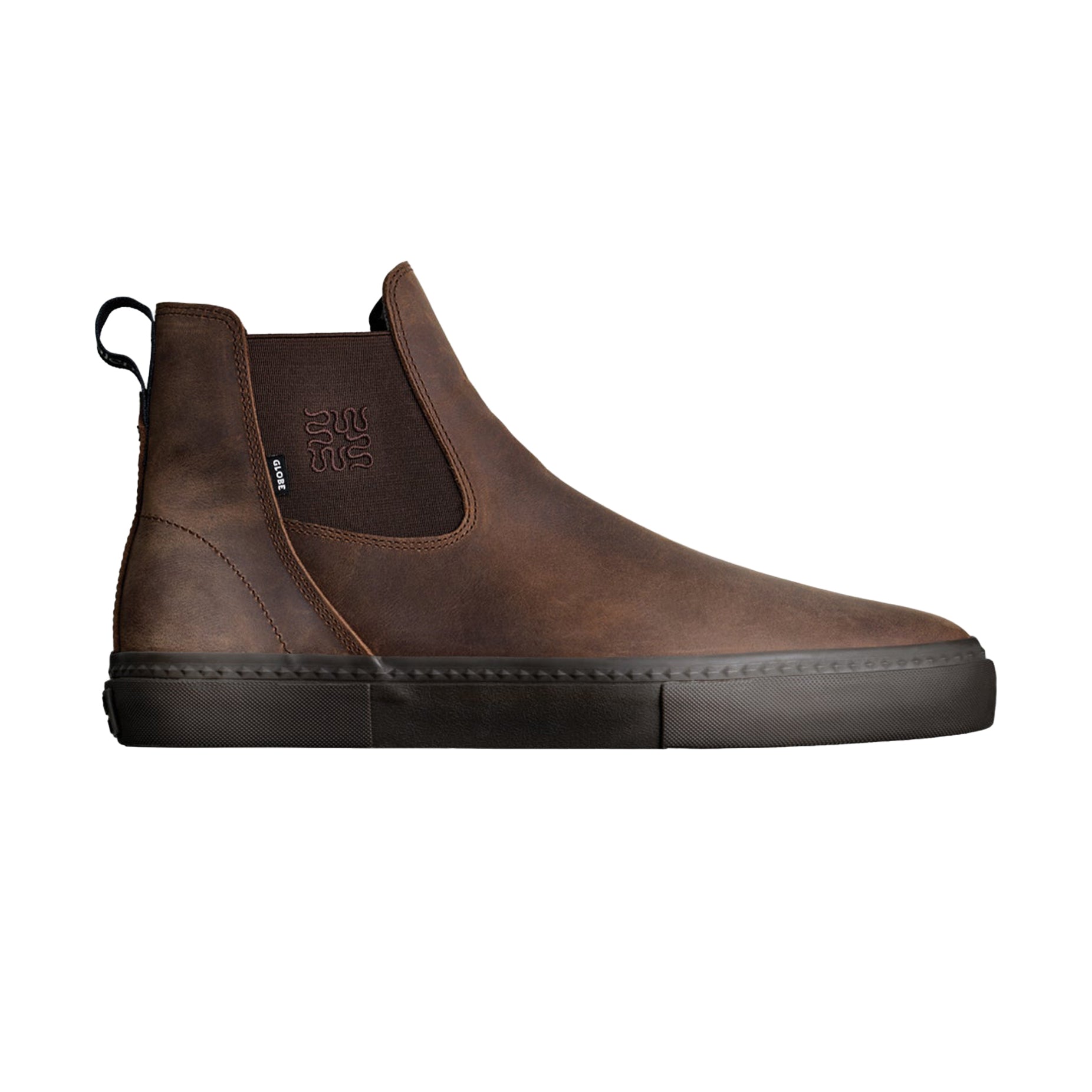 The Dover II is an evolution of the popular Dover, inspired by the classic Aussie Chelsea boot. This vulcanized slip-on is now an inch taller with heel pod for improved fit and comfort. Designed for skateboarding, the Dover II features Globe's Shockbed™ insole for impact control and Super-V™ out-sole for enhanced grip and board feel. Stretch elastic gore allows for easy slip-on entry. Made from full grain leather.