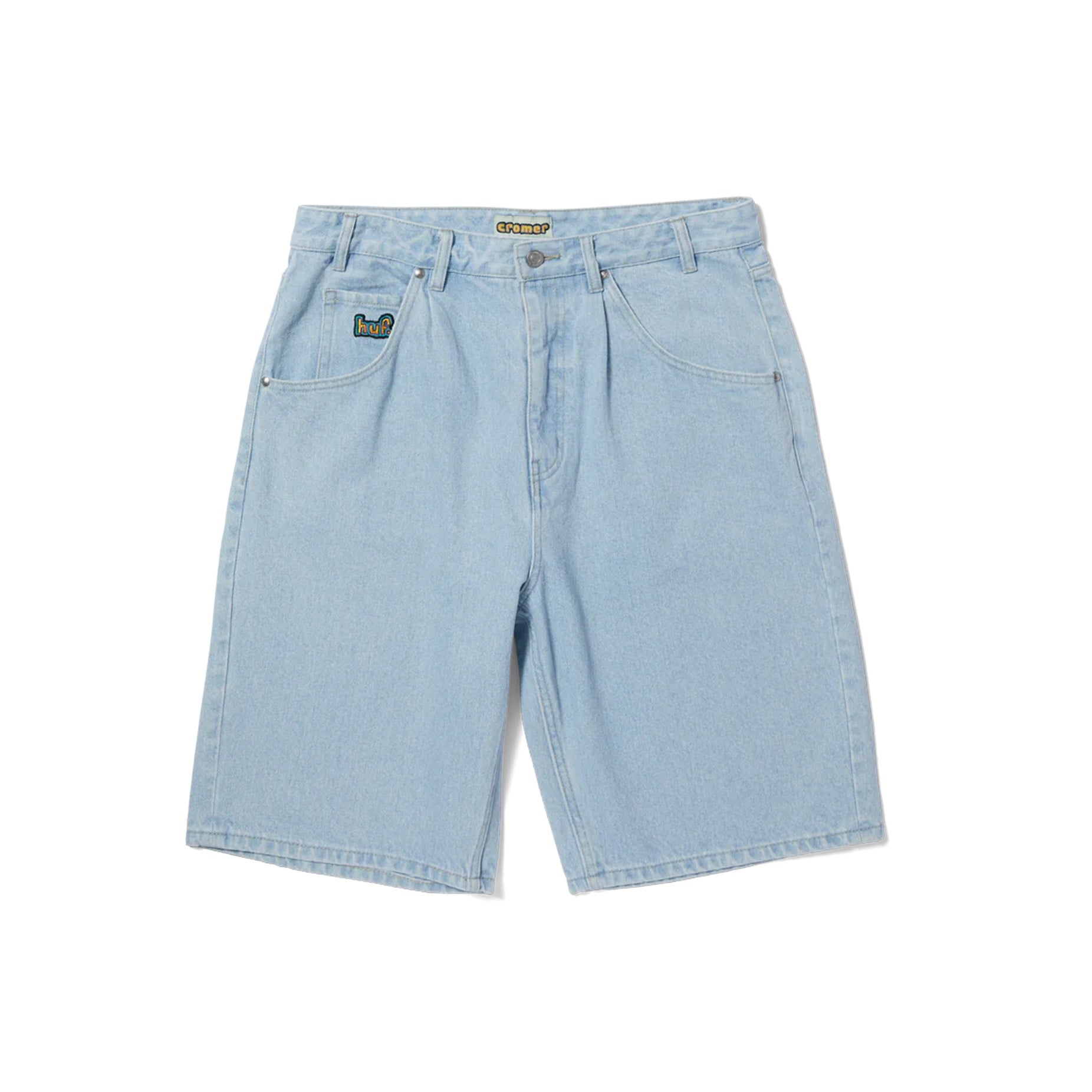 - Baggy fit denim short designed with HUF team rider Brad Cromer