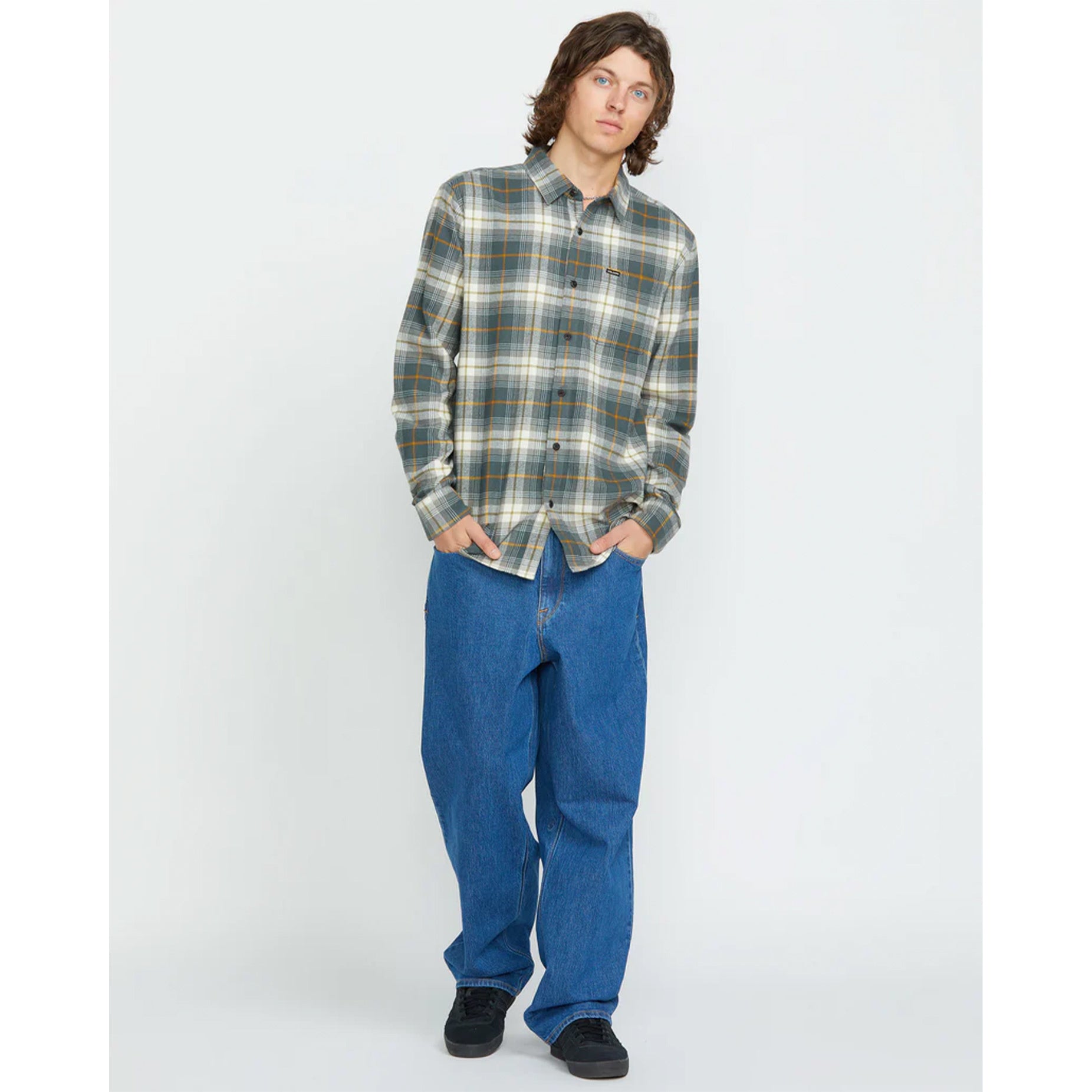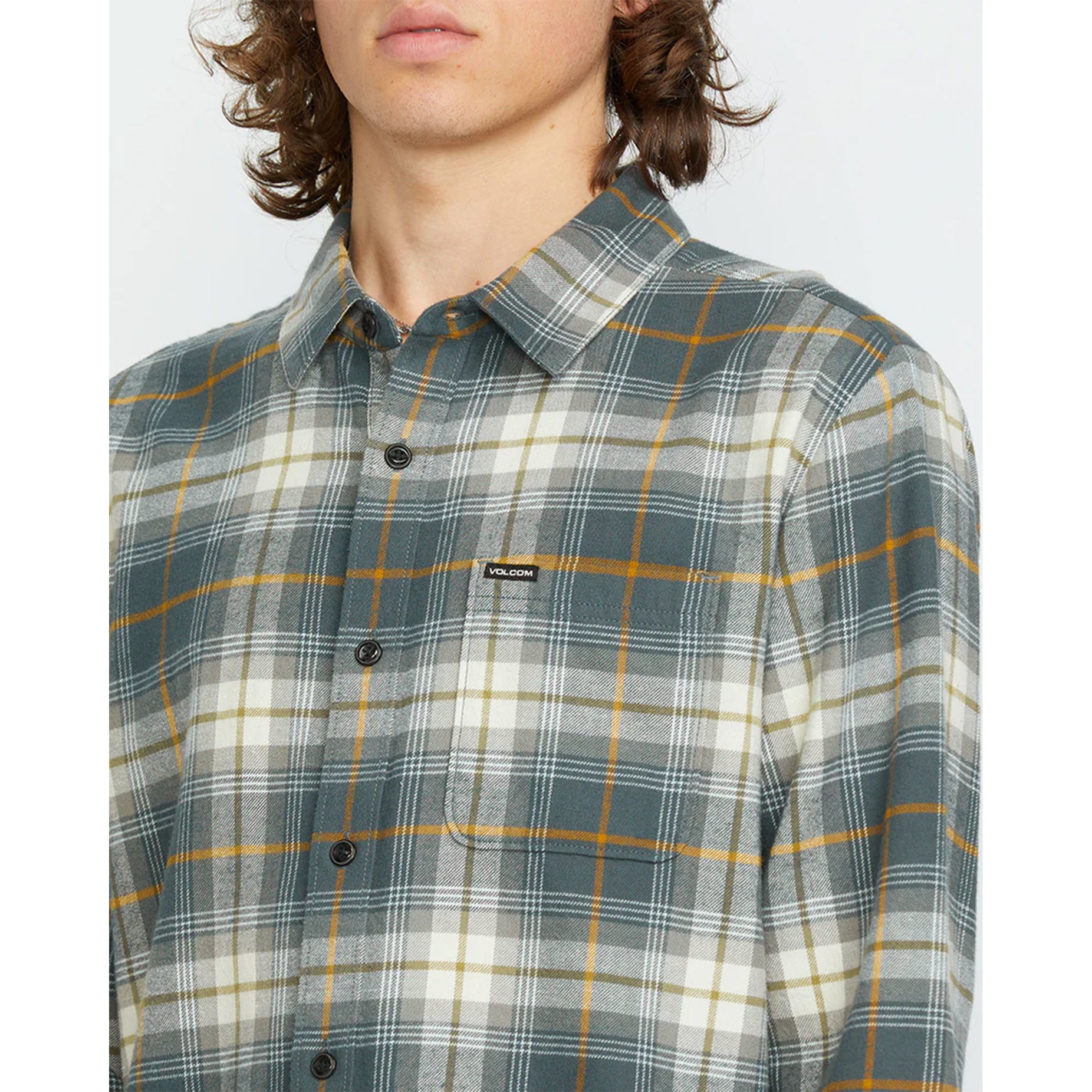 Volcom Caden Plaid Long Sleeve Flannel Shirt - Dark Slate